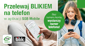 wyślij lub odbierz przelew na telefon w SGB Mobile wybierz BLIK -> Przelew na telefon BLIK , wpisz numer telefonu lub wybierz z kontaktów i zatwierdź go PIN-em.
