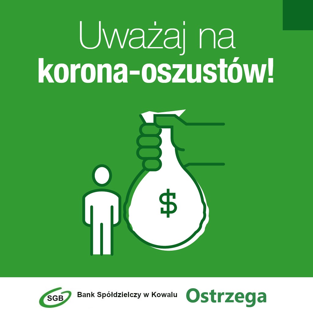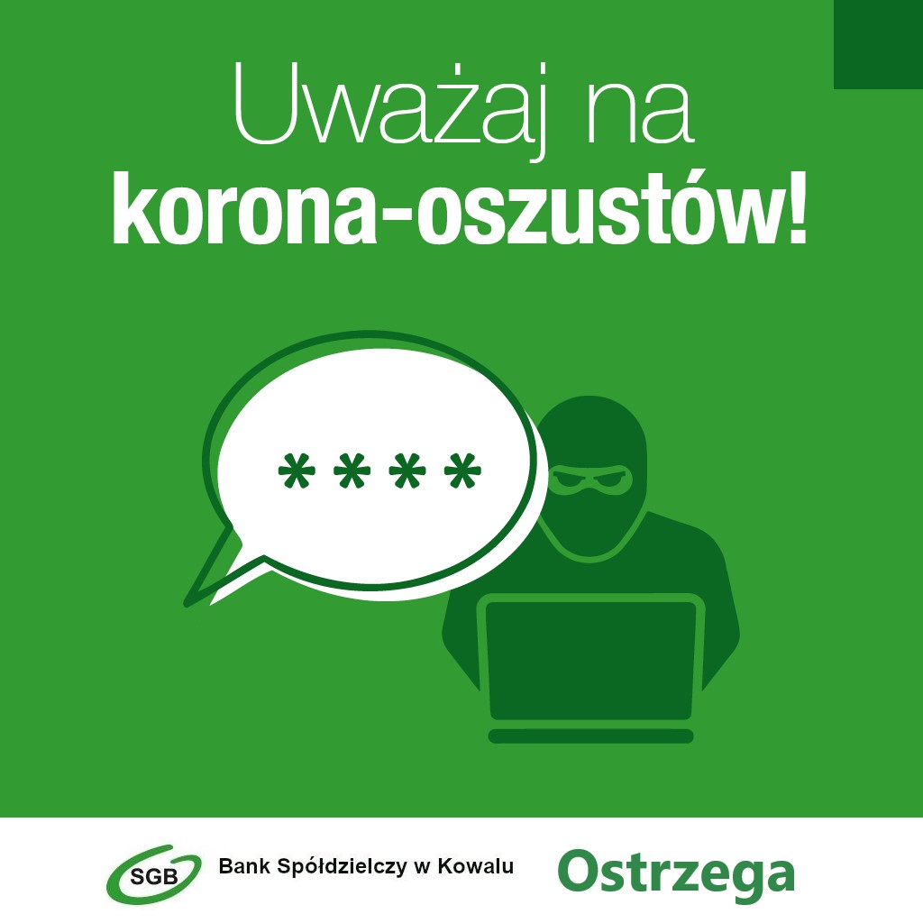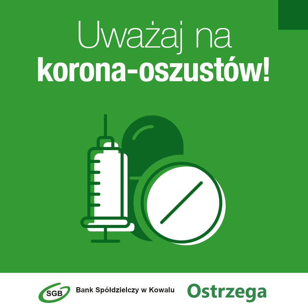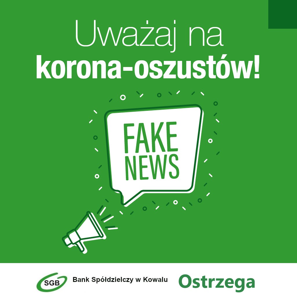 • Fake news, czyli fałszywe, często sensacyjne informacje na temat epidemii, potrzebnego wsparcia żywnościowego, czy prośby o przekazanie brakujących środków ochrony itp. Wiadomości te zawierają złośliwe oprogramowanie oraz linki lub załączniki, które mają na celu wyłudzenie danych osobowych, a najczęściej też danych do logowania na Twoje konto w bankowości internetowej. Nie klikaj w takie linki!