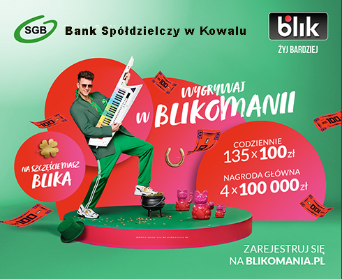 BLIKOMANIA  dla klientów Banku Spółdzielczego w Kowalu. Rekordowa pula nagród, ponad 2 mln zł do wygrania.