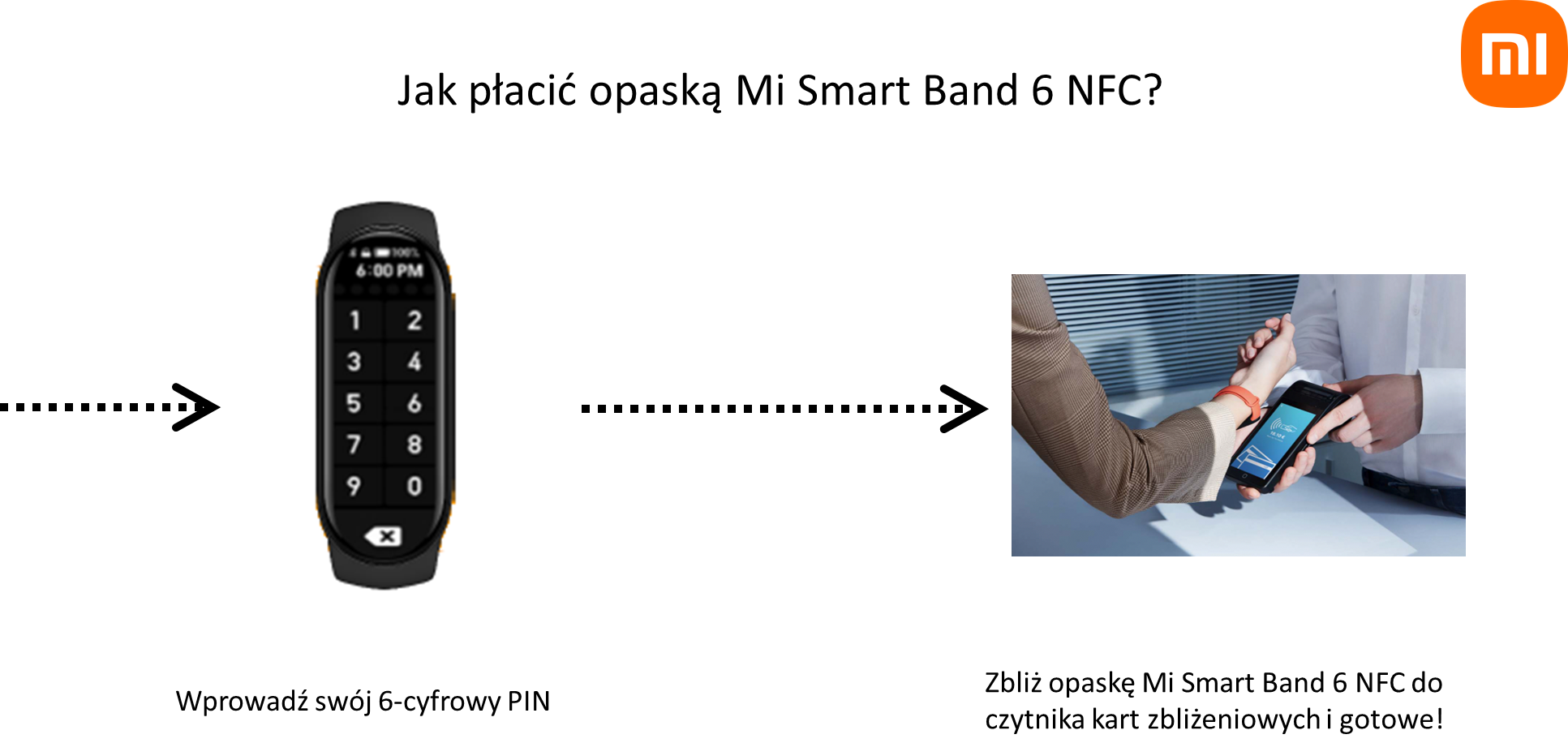Xiaomi Pay to zbliżeniowe płatności mobilne z wykorzystaniem opaski Mi Smart Band 6 NFC.
